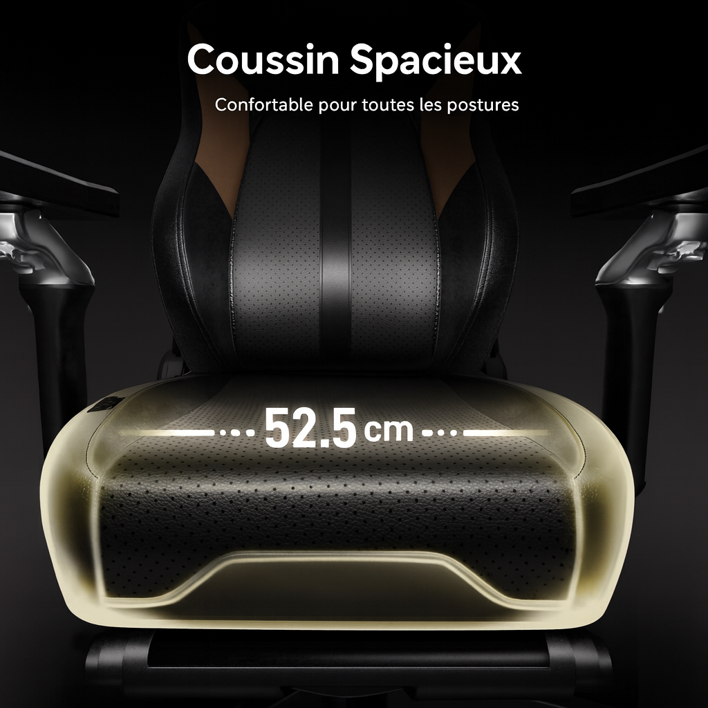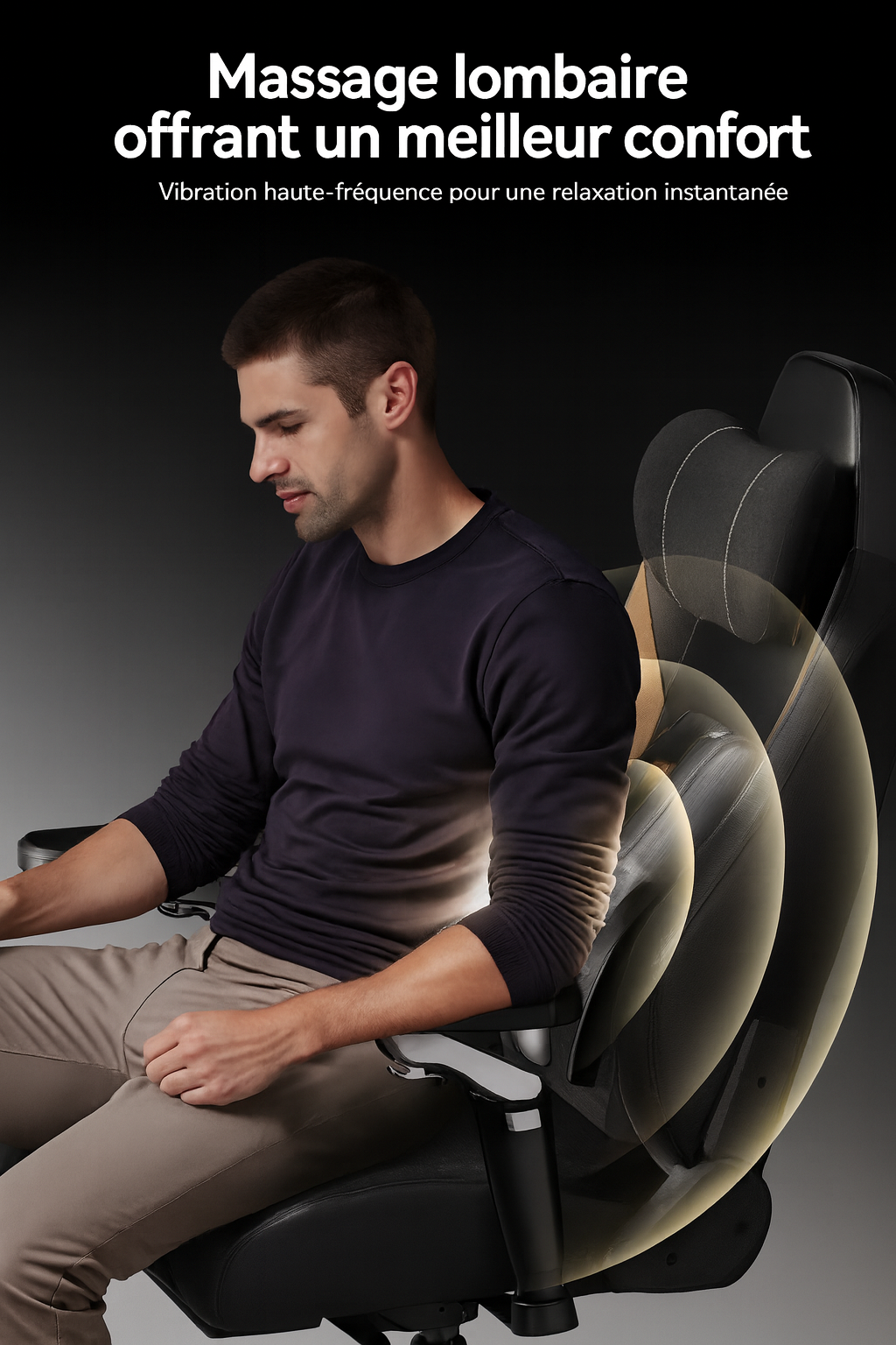Chaise de gaming ergonomique équipée d’un système de climatisation et chauffage réglable pour un confort optimal toute l’année. Avec son soutien lombaire dynamique, sa fonction massage intégrée et ses accoudoirs 4D ajustables, elle offre une assise adaptée aux longues sessions de jeu ou de travail.